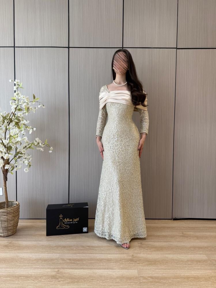 ​هذا الفستان هو قطعة سهرة راقية وكلاسيكية تجمع بين البريق الفخم والتصميم المحتشم والأنيق.