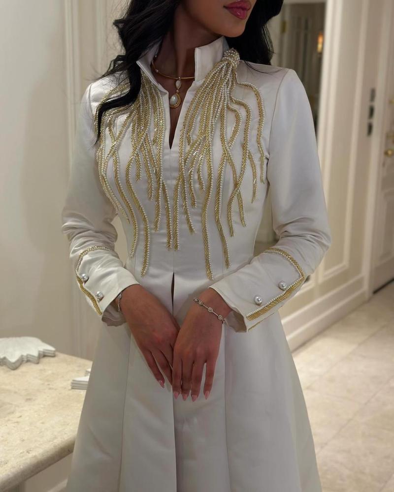 استعدّي ليالٍ ساحرة وأناقة لا تُضاهى مع فستان كنوز الجديد طويلة لامع المذهل المزيّن بقصة ساحرة حيث يأسر الأنظار بتصميمه العصري والأنثوي