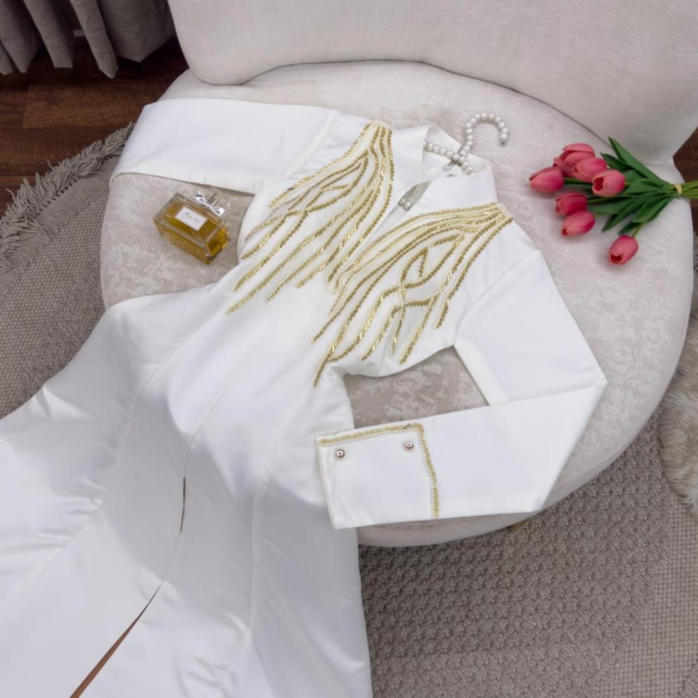 في آن واحد مما يمتاز بقصة ملفتة تبرز جمال قوامك و يتألق بقماشه الفاخر والناعم مما يضفي عليكِ مظهرًا راقيًا ومغرًا في كل لحظة مما يضفي لمسة من الأناقة والفخامة ارتديه في المناسبات الخاصة والسهرات الراقية واستعدي لسحر الإطلالة وإبهار الجميع بأناقتكِ اللافتة وجاذبيتكِ الفائقة