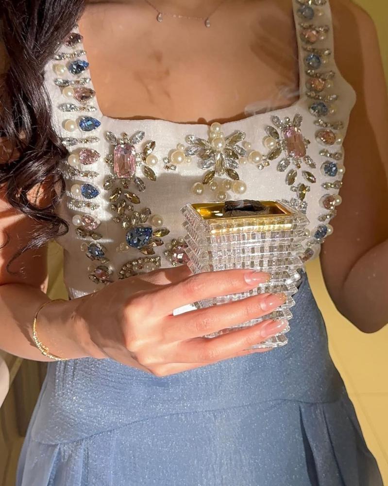 - التفاصيل الدقيقة: كل تفصيل في الفستان مصمم بعناية، مما يعكس جودة الحرفية والاهتمام بالتفاصيل.