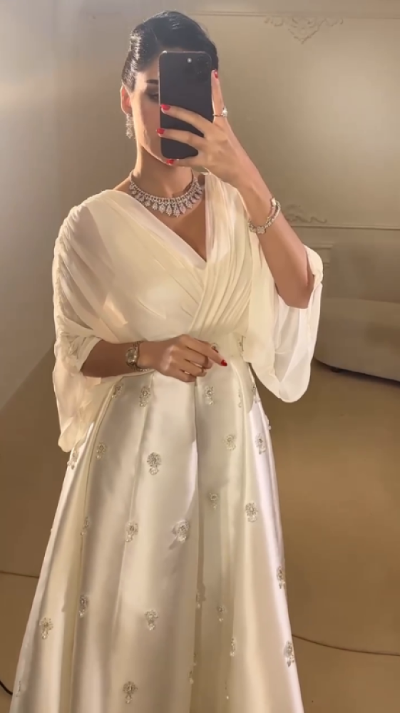 بفضل خامة تفته لمعه الراقية، ستشعرين بالثقة وتلفتين الأنظار بجاذبية ناعمة لا تُنسى. هذا الفستان هو الخيار المثالي لمن تبحث عن الأناقة الخالدة والجودة العالية التي تضيف لقيمة كل مناسبة ترتدينه فيها.