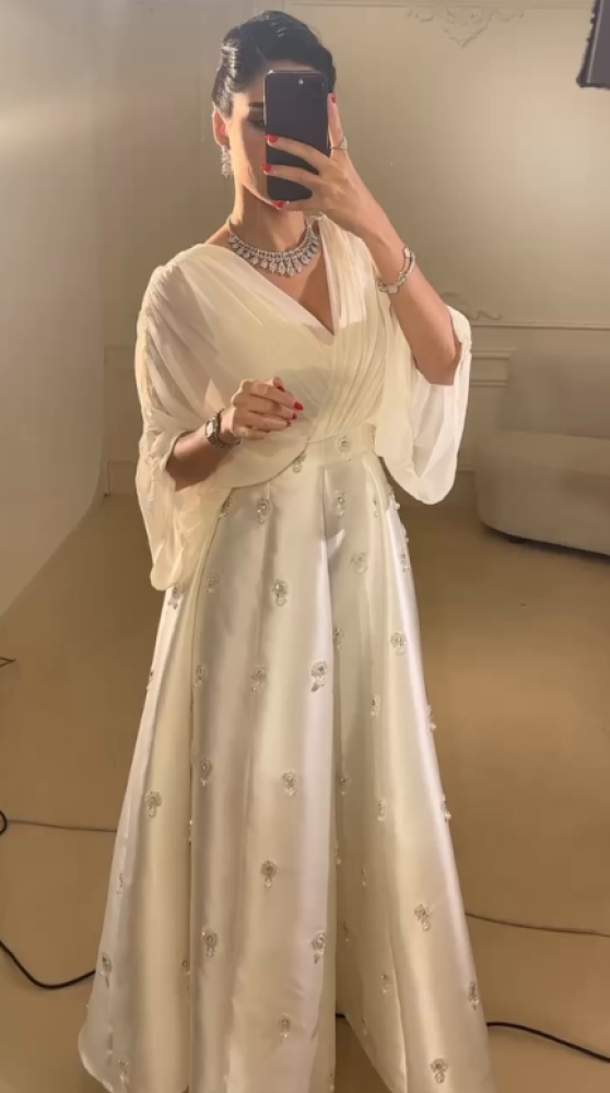 لا تفوتي الفرصة لتكوني الأجمل في مناسبتك القادمة مع فستان ام وجدان الانيق سهرة بخامة شيفون وميكادو بتصميم أنيق. احصلي عليه الآن وكوني نجمة السهرة!