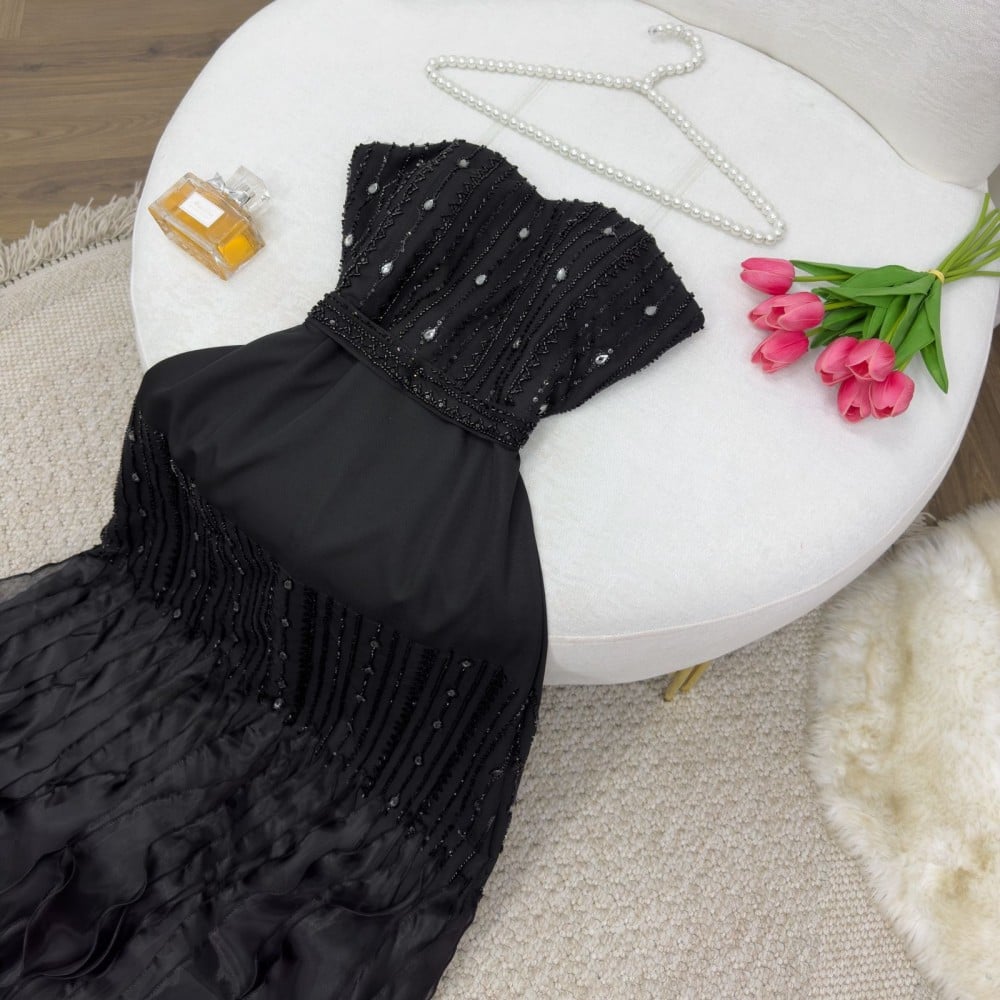 كلفة متقنة تضفي لمسة فاخرة وتزيد من تألق الفستان.