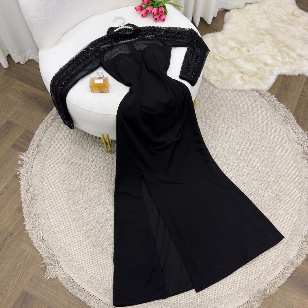 في آن واحد مما يمتاز بقصة ملفتة تبرز جمال قوامك و يتألق بقماشه الفاخر والناعم مما يضفي عليكِ مظهرًا راقيًا ومغرًا في كل لحظة مما يضفي لمسة من الأناقة والفخامة ارتديه في المناسبات الخاصة والسهرات الراقية واستعدي لسحر الإطلالة وإبهار الجميع بأناقتكِ اللافتة وجاذبيتكِ الفائقة