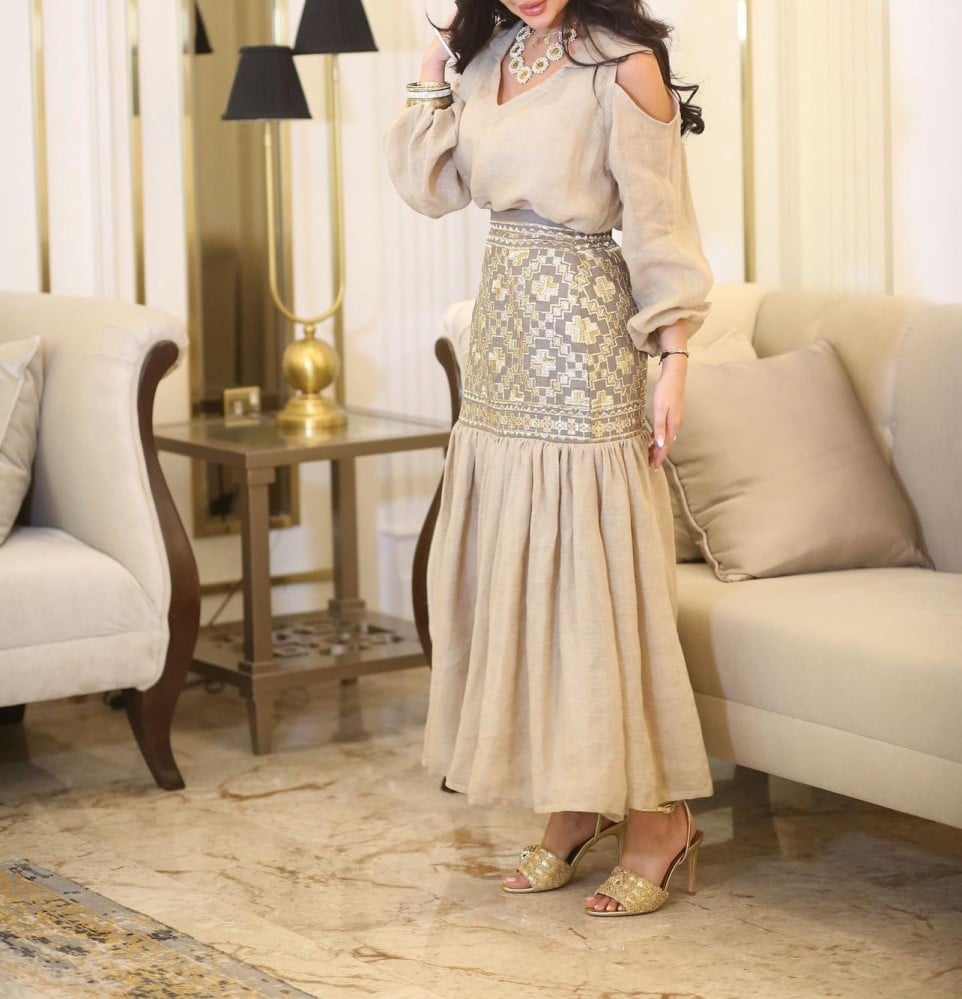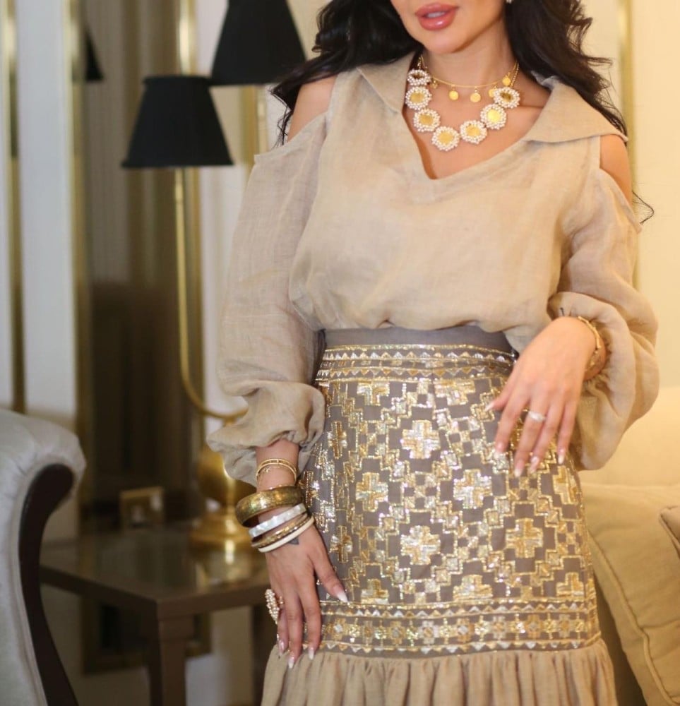 استعدّي ليالٍ ساحرة وأناقة لا تُضاهى مع جلابية كنوز الجديد طويل لامع المذهل المزيّن بقصة ساحرة حيث يأسر الأنظار بتصميمه العصري والأنثوي في آن واحد مما يمتاز بقصة ملفتة تبرز جمال قوامك و يتألق بقماشه الفاخر والناعم مما يضفي عليكِ مظهرًا راقيًا ومغرًا في كل لحظة مما يضفي لمسة من الأناقة والفخامة ارتديه في المناسبات الخاصة والسهرات الراقية واستعدي لسحر الإطلالة وإبهار الجميع بأناقتكِ اللافتة وجاذبيتكِ الفائقة
