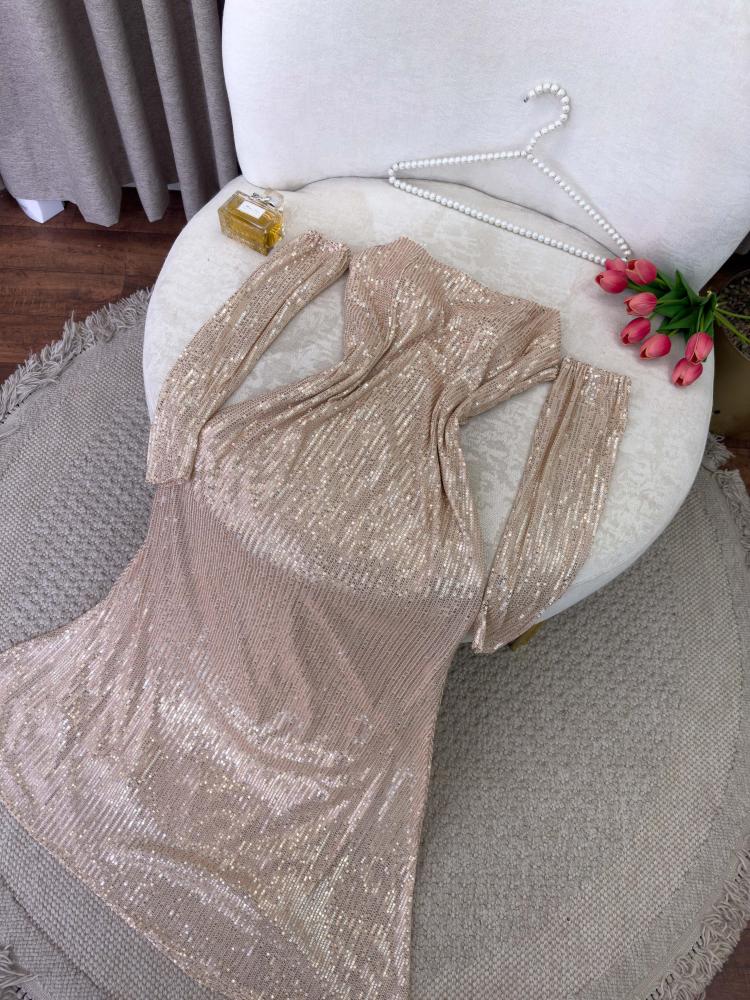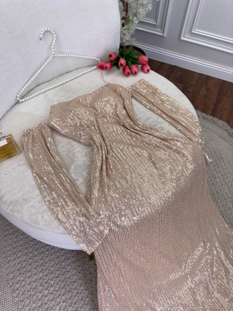استعدّي ليالٍ ساحرة وأناقة لا تُضاهى مع فستان كنوز الجديد طويلة لامع المذهل المزيّن بقصة ساحرة حيث يأسر الأنظار بتصميمه العصري والأنثوي